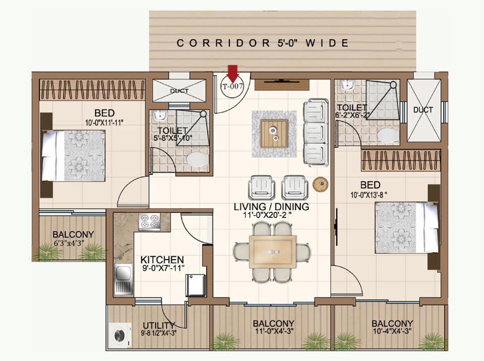 2 BHK, 1066 Sft